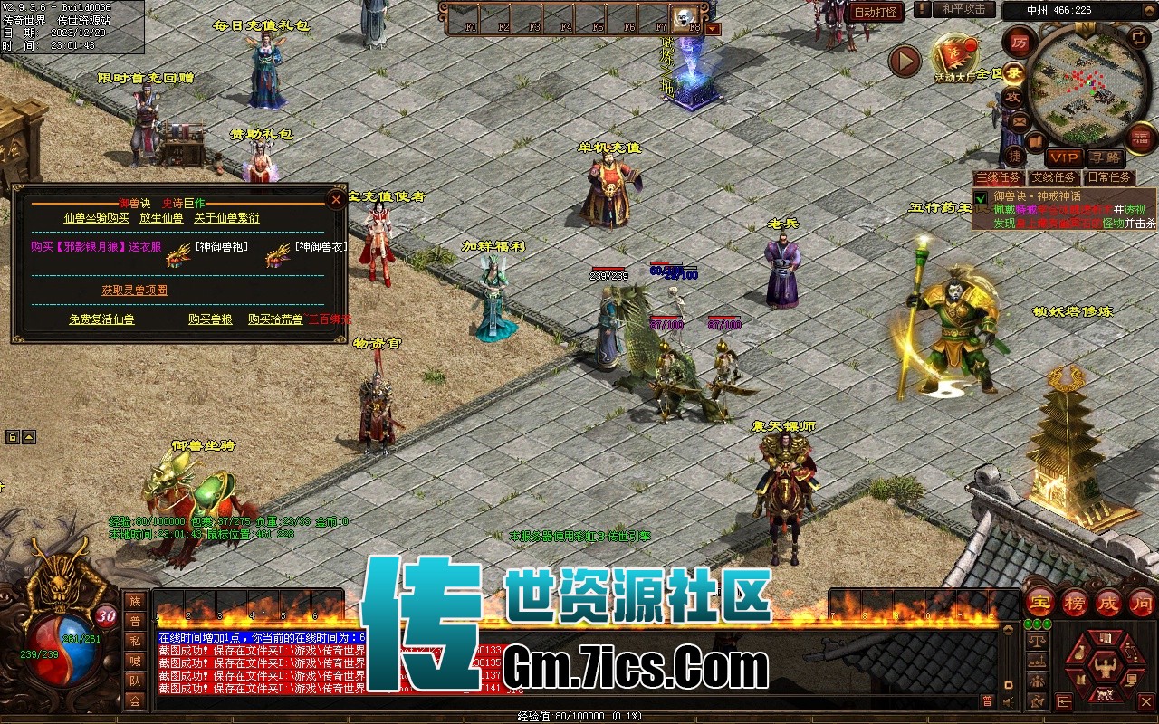 4 领取礼包后送得麒麟御兽,在安全区御兽NPC激活(道士需要先学习召唤神兽,在点附体才能召唤),
