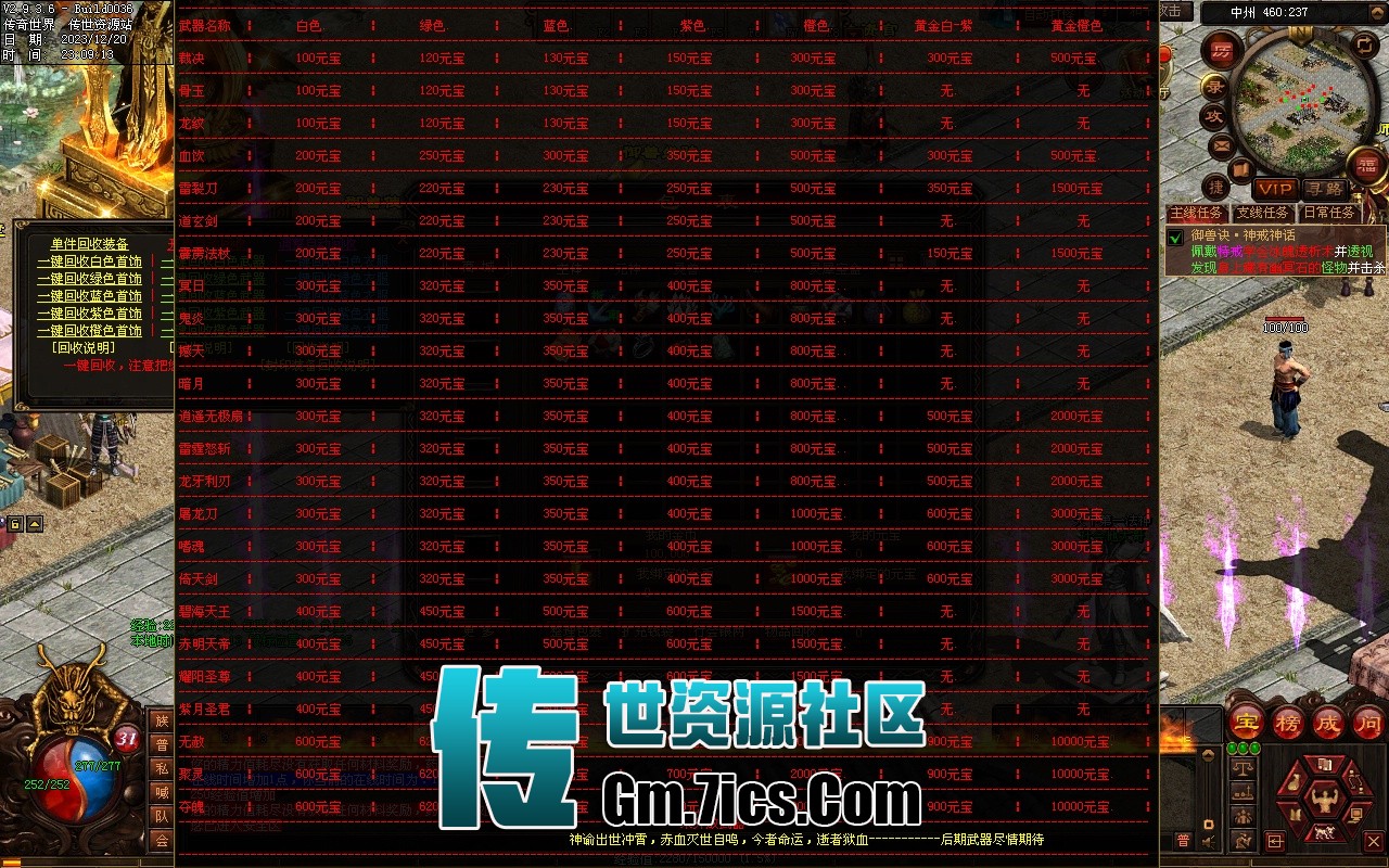 游戏小技巧:本游戏不充值一样可以享受全部内容【封印装备在包里使用回收卡单件回收会收充值积分】