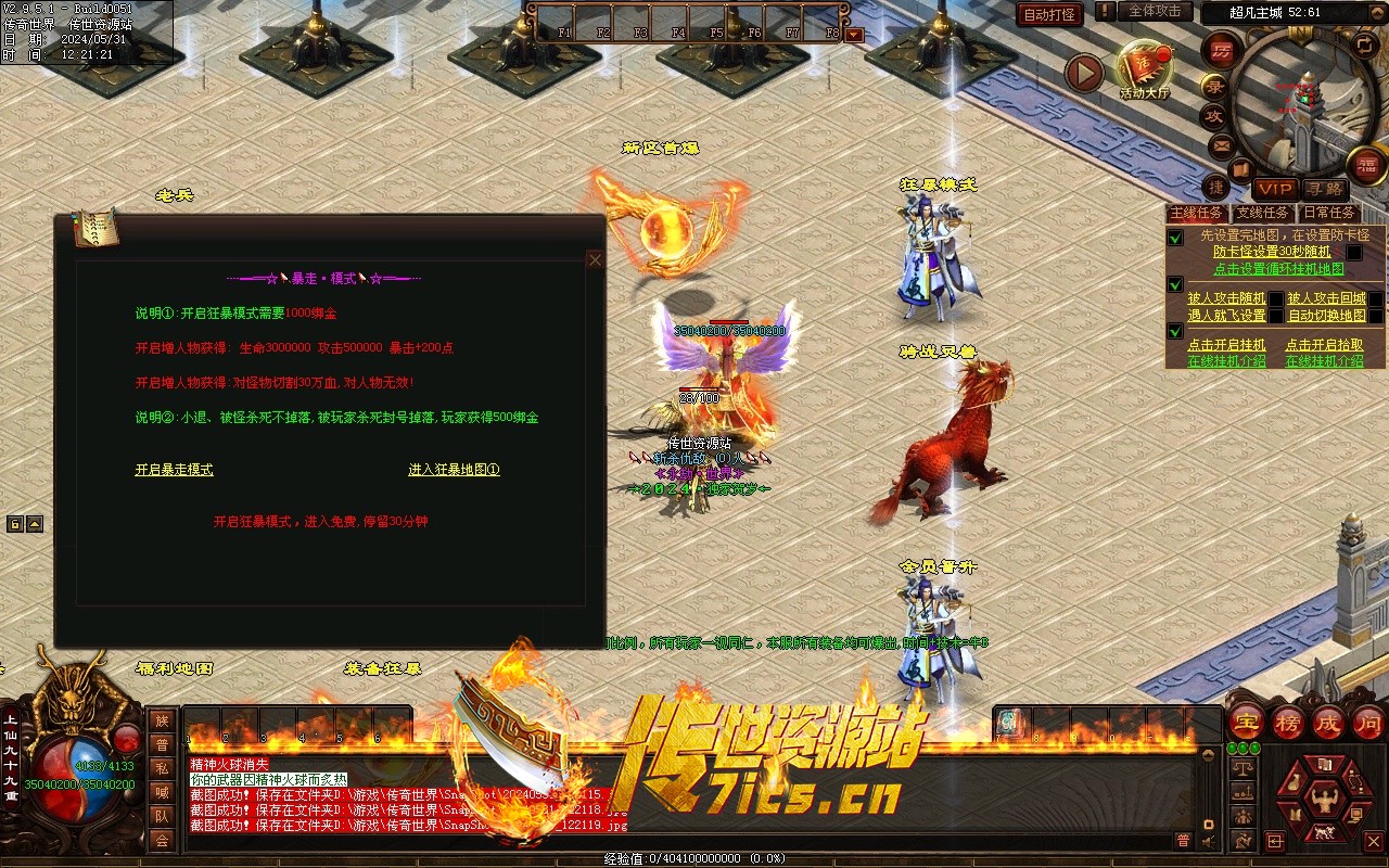 本服开启狂暴,带切割功能,打怪超快,属性超高
