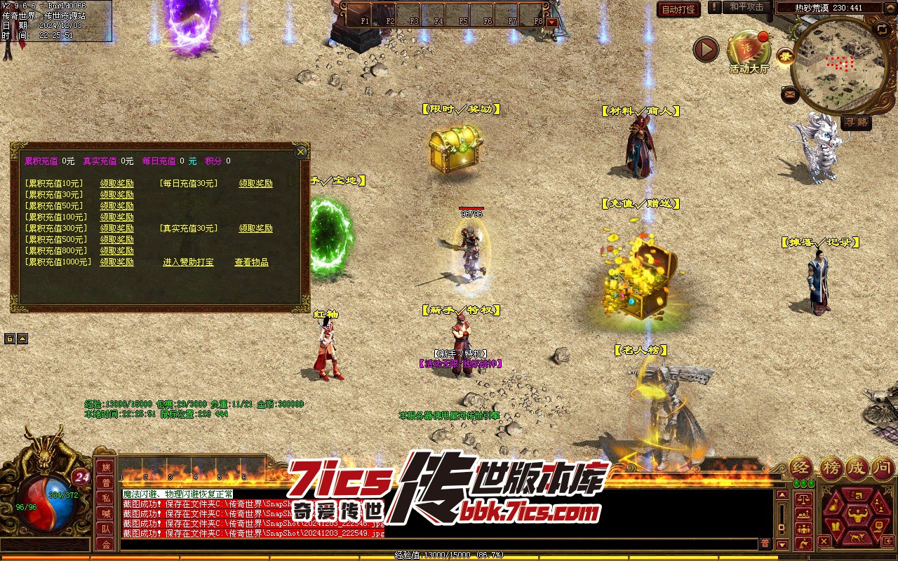 20、本服提供装备自动回收经验、元宝、修炼值,各类材料自动存仓,范围拾取等功能(全部免费使用)