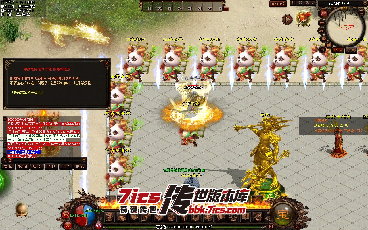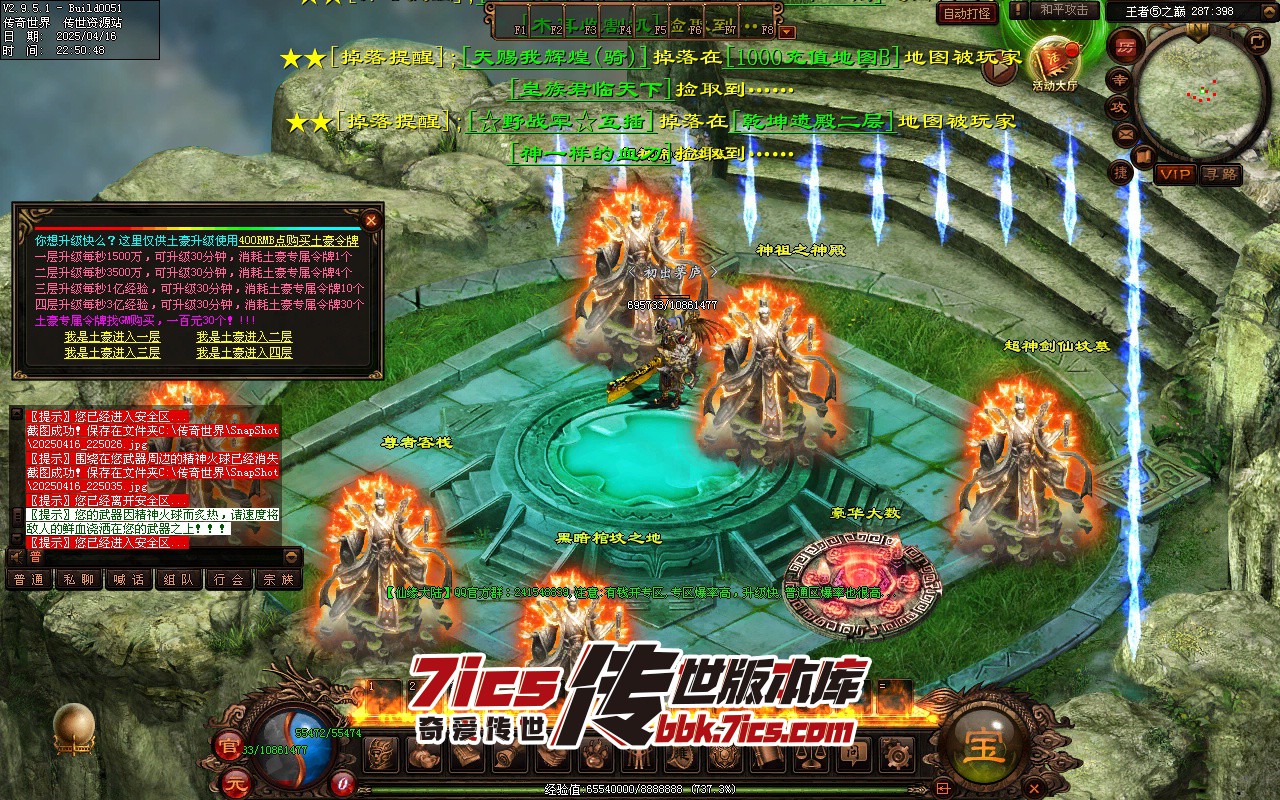 然后就直接进VIP6层打怪,从6开始打,先抢怪,会员地图打完就去别墅地图,别墅打完去锁妖塔打怪,