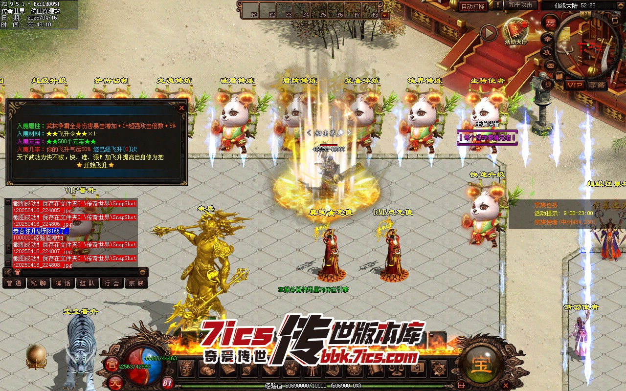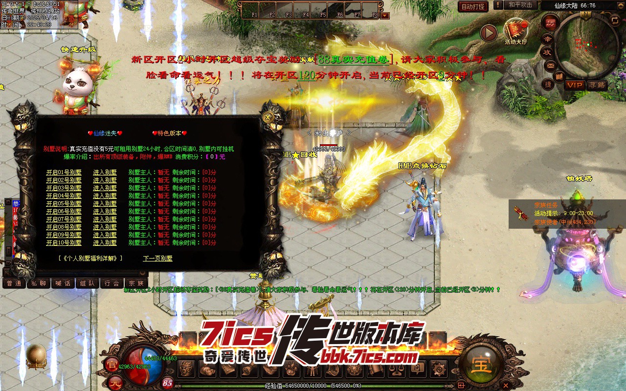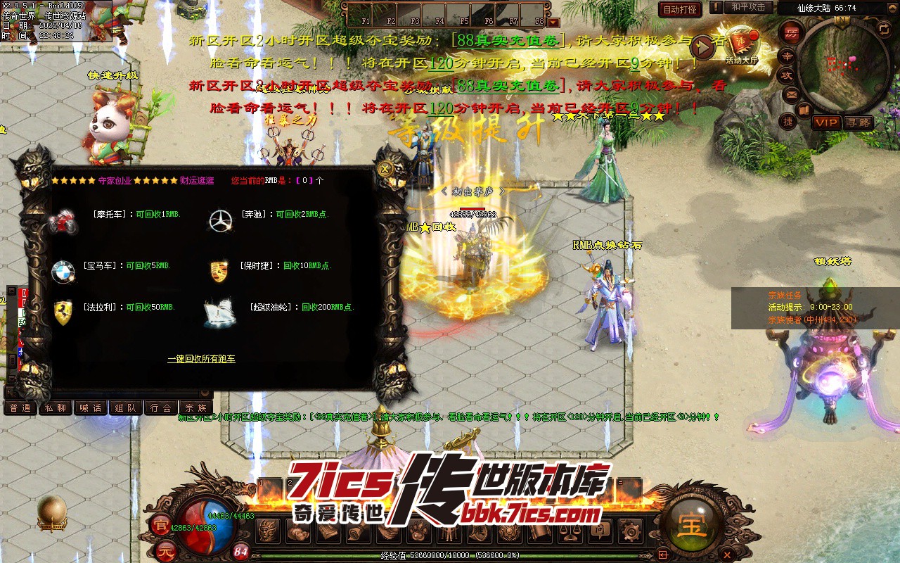 满回馈+4大陆超级别墅+5倍爆率+3天合区+可以带1个打手 主号满回馈 打手送100充值+3000RMB充值,直接可以进6大陆神地