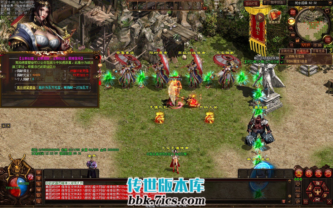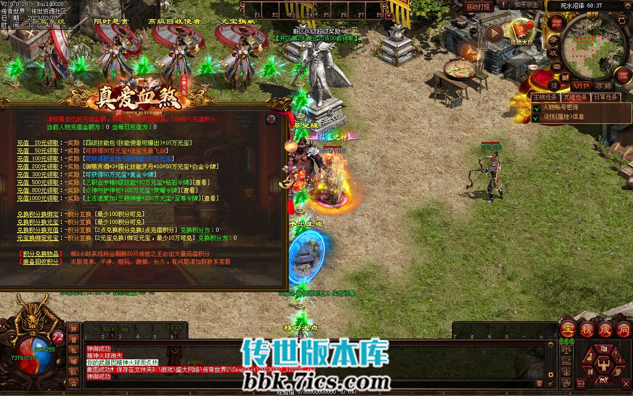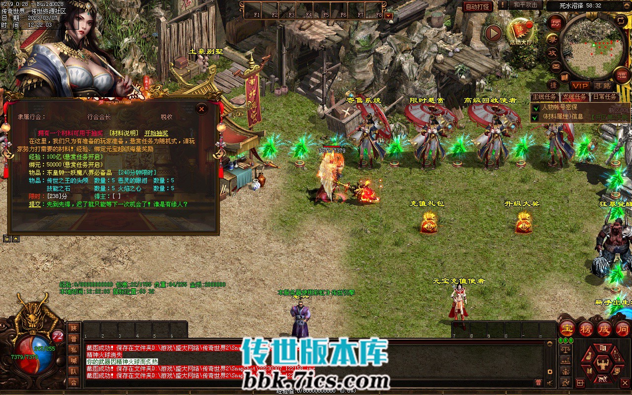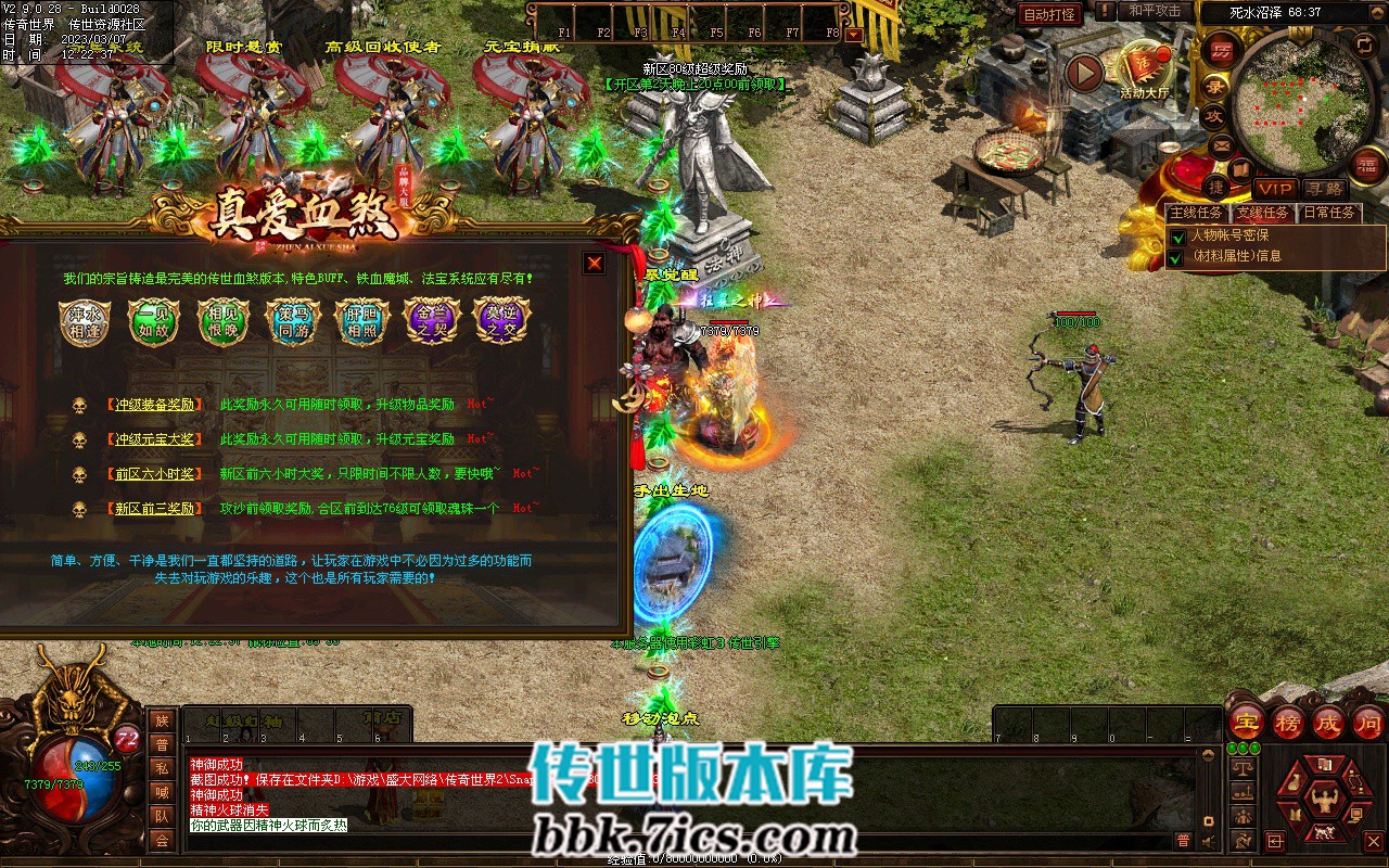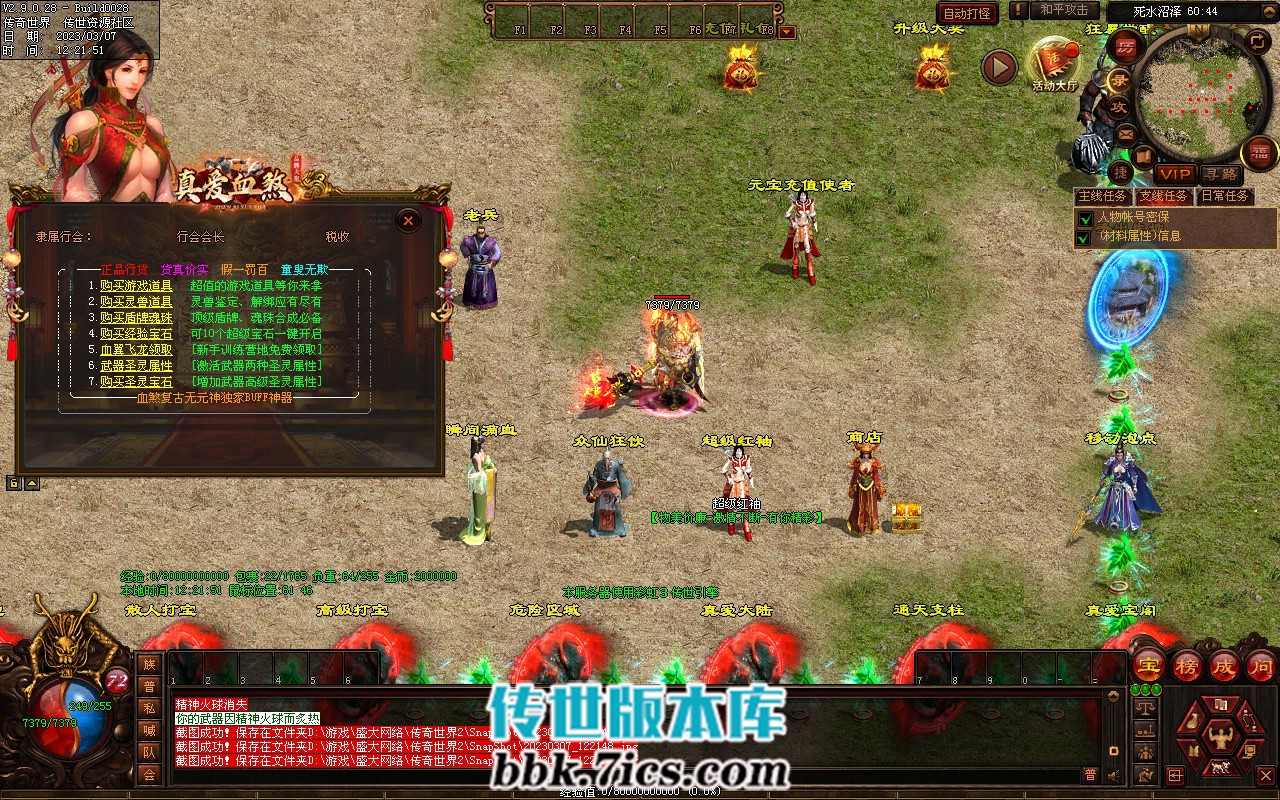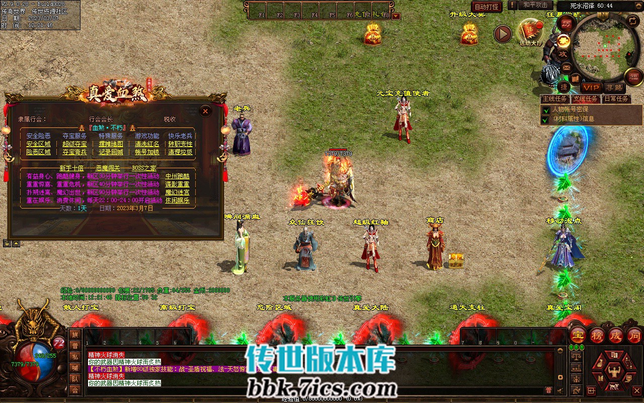 7、攻占沙城: 开区第2天晚> 20-21 点举行,获胜的行会可获得100万元宝和传世之王