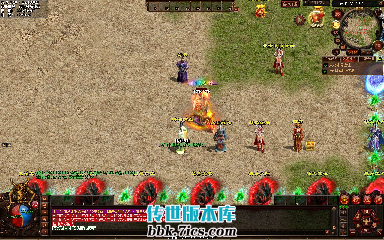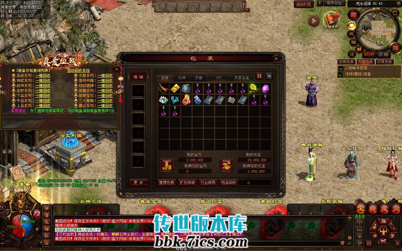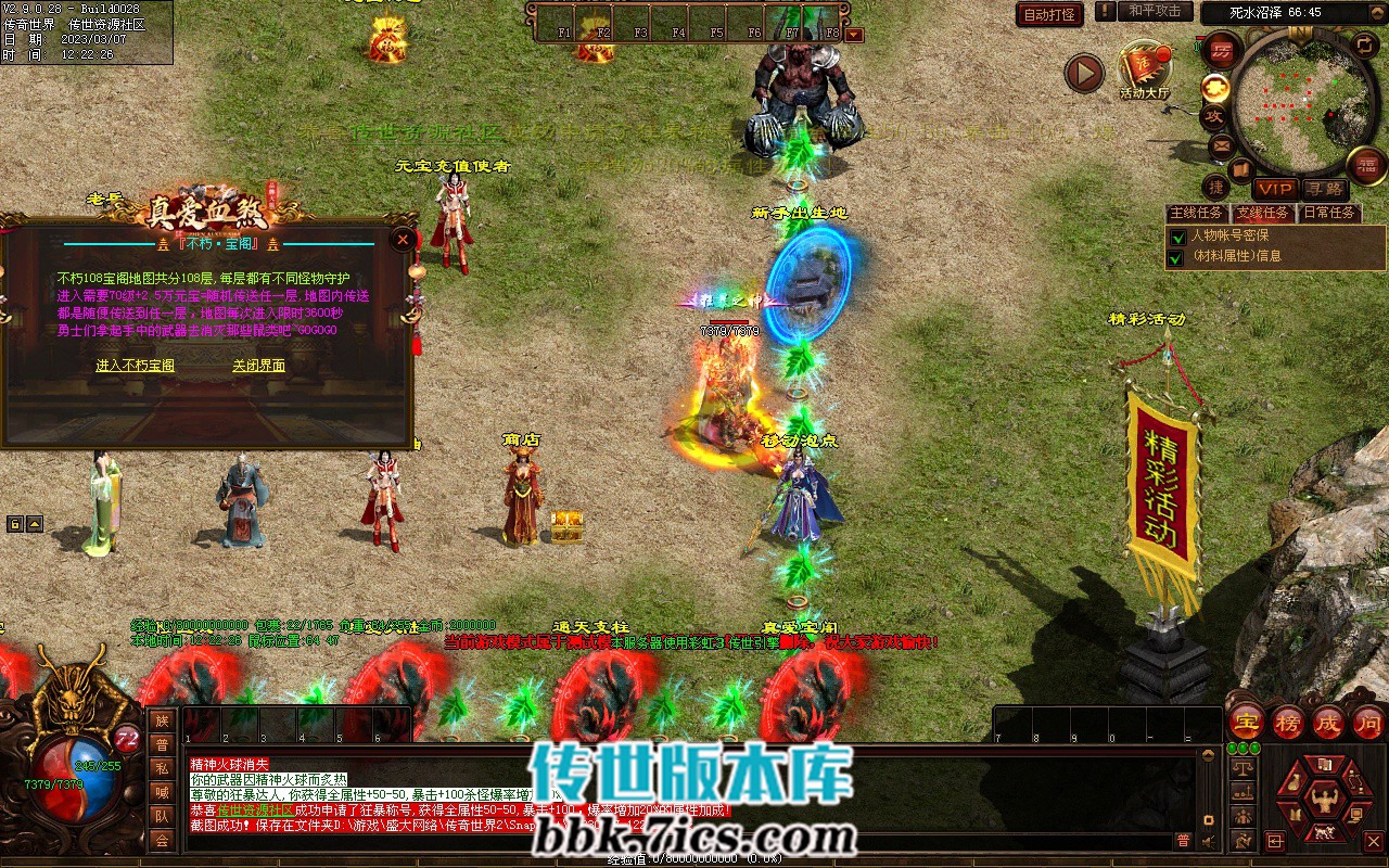 5、超级夺宝: 开区120分钟举行 ,持续30分钟,奖励100万元宝和传世之王封印石。
