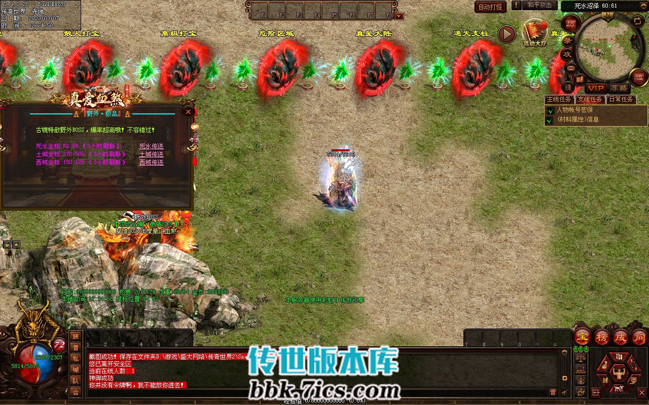 特色BOSS:> 【传世之王】每隔120分钟会刷新在全服数百张地图,为必打BOSS,请