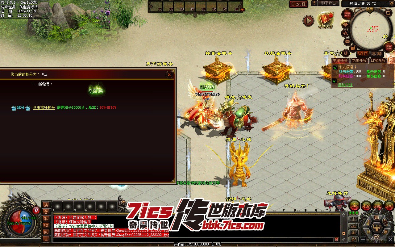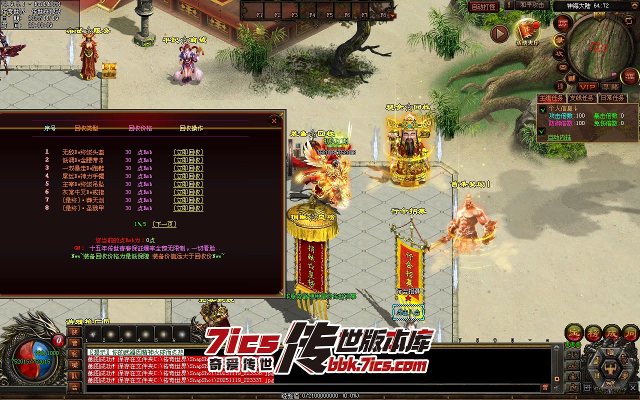 747-神海大陆无限刀_全屏拾取_自动穿戴_回收_挂机-传世版本