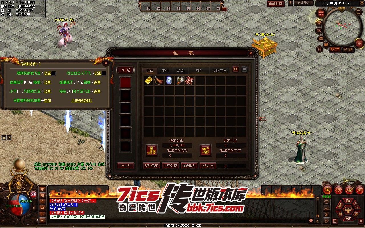 版本测试说明:版本为星河引擎-算是复古的无限刀,属性低-一切懒人功能都有,但地图采用的传世官方地图感觉缺点意思